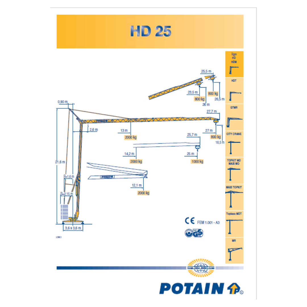Schreibe die erste Rezension für „Kran Mieten Potain HD25“